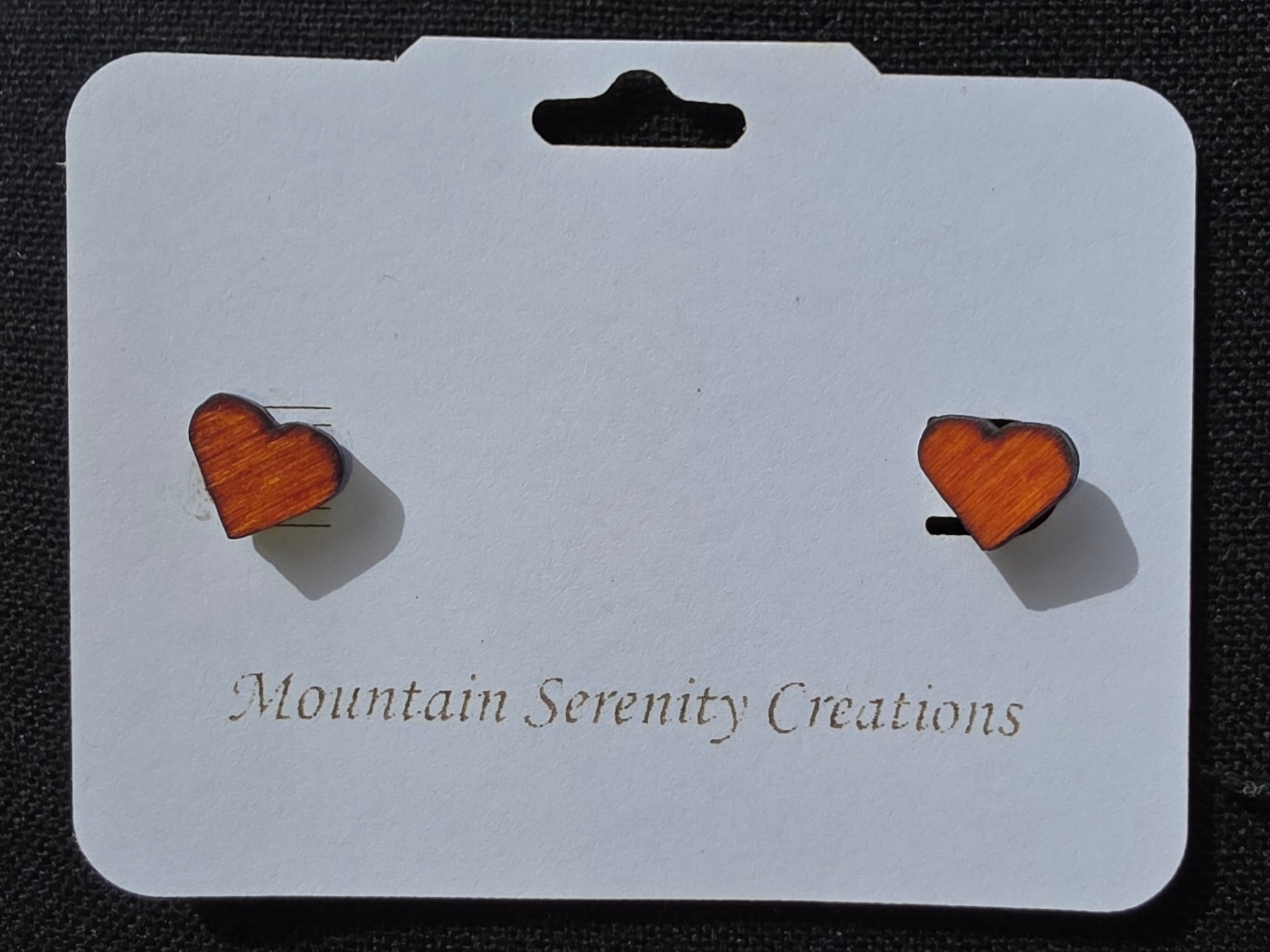 Simple wood earrings vary from circles, ovals, stars, tear drop to heart shape. Each piece has been cut out of 1/8-inch wood and stained in oil-based wood stained, then hand glued to the earring backing.